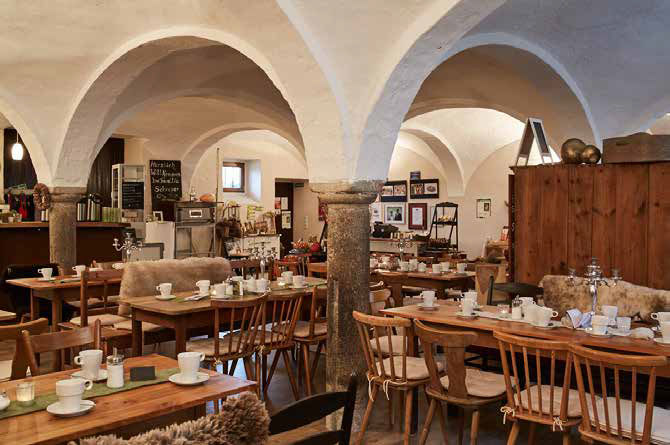 Wir haben einen alten Kuhstall aus dem 18. Jahrhundert – einst Zuhause von 25 Milchkühen – in ein rustikal-charmantes Gewölbe-Landcafé und Eventlocation umgebaut – alles mit viel Handarbeit und Zeitaufwand. Hier wird – und das nicht nur im Herbst zur Kürbiszeit – noch alles von Hand gerührt. Die Crew kocht alte Klassiker wie das Bratl in der Raine - ebenso fleischlose moderne Gerichte.
